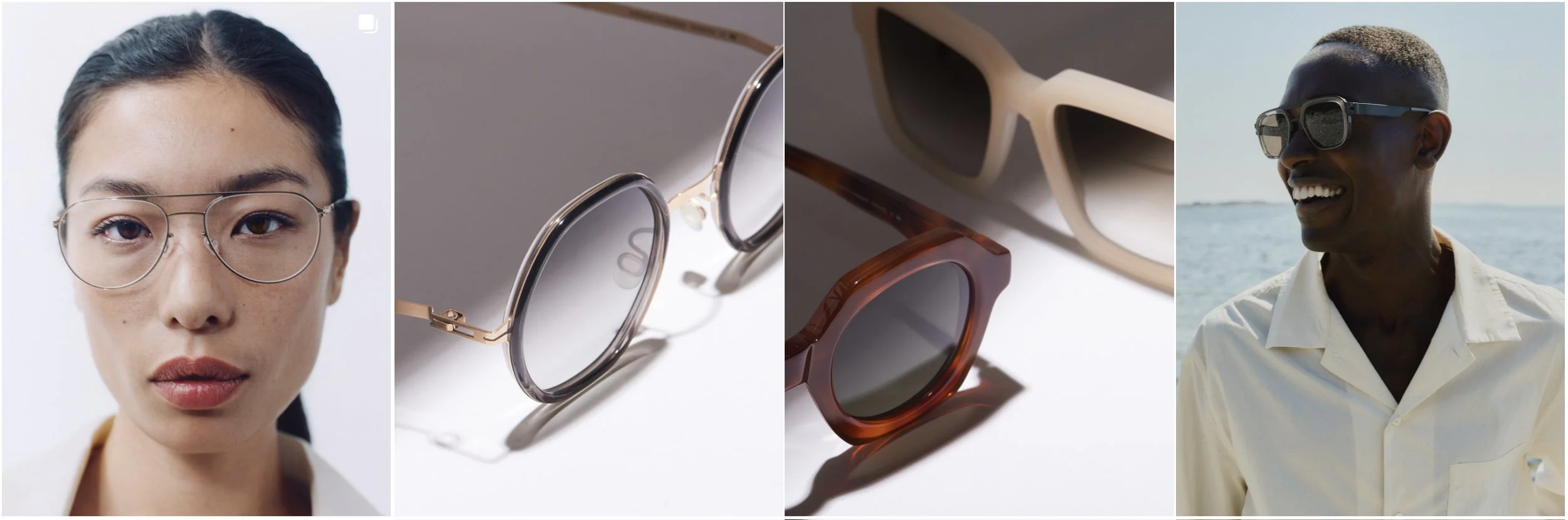 Mykita has reimagined what eyewear can be. The name itself comes from their roots in a former children’s nursery (“Kita” in German), a playful beginning that grew into a global design house. Known for their patented screwless hinges, feather-light construction, and bold minimalist aesthetic, Mykita frames are as much art and architecture as they are eyewear.